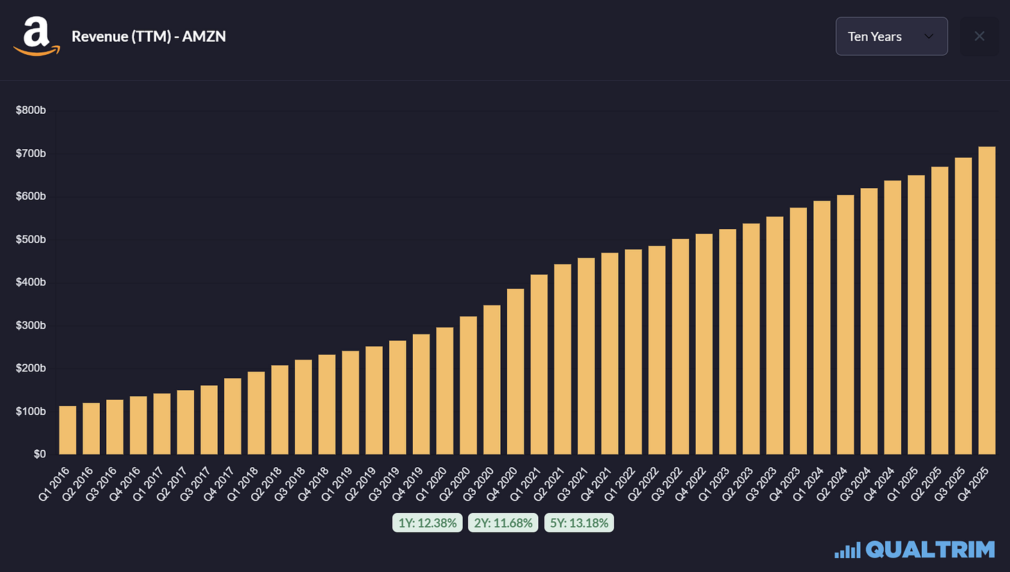 To put it in context, Amazon plans to spend more on infrastructure in one year than the entire market cap of Intel or Boeing. The market looked at this number, looked at the resulting decline in FCF, and hit the sell button.