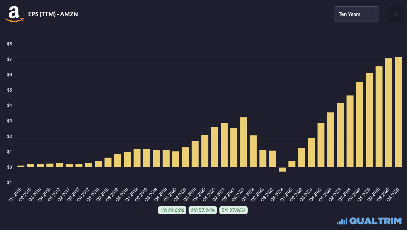 The first was EPS. Amazon reported $1.95, missing the analyst consensus of $1.97 by $0.02.