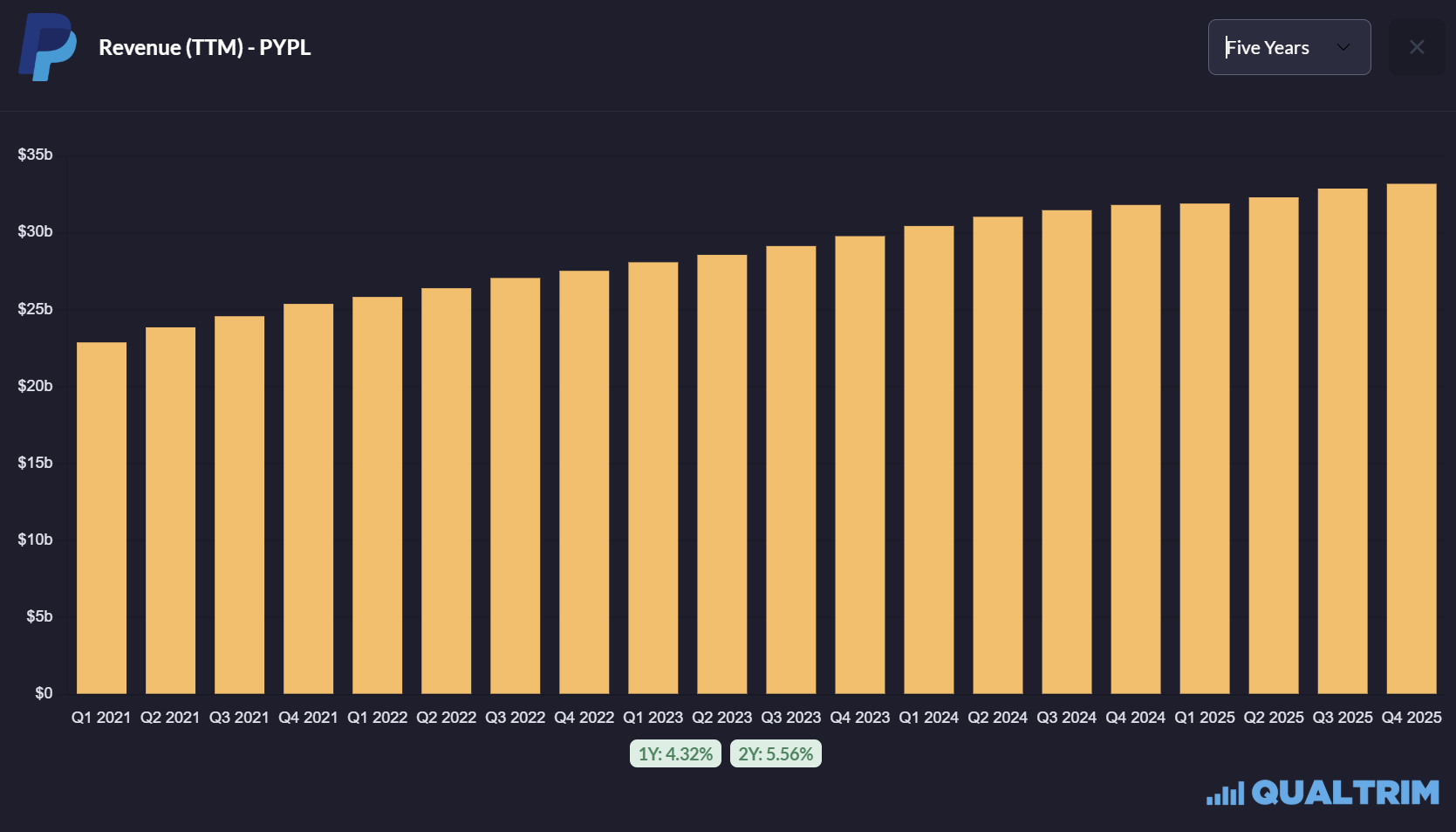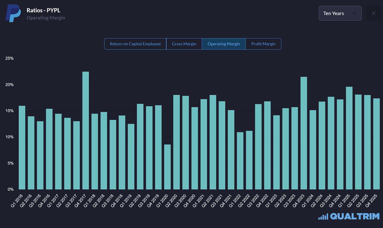 Nevertheless, we must not lose sight of the scale. PayPal processed $1.79 trillion in payments in 2025. That is roughly the GDP of Australia.