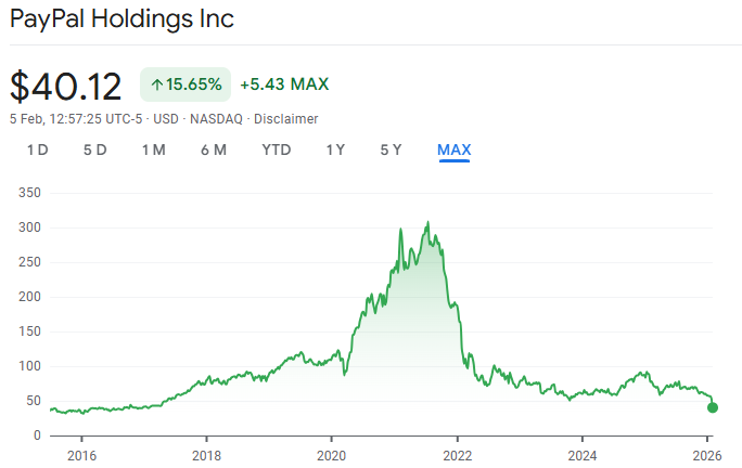 PayPal stock recently dropped 25% in 3 days, settling in the low 40s - a price level we have not seen since the company was essentially a subsidiary of eBay, long before the pandemic-induced euphoria sent it soaring to $310.