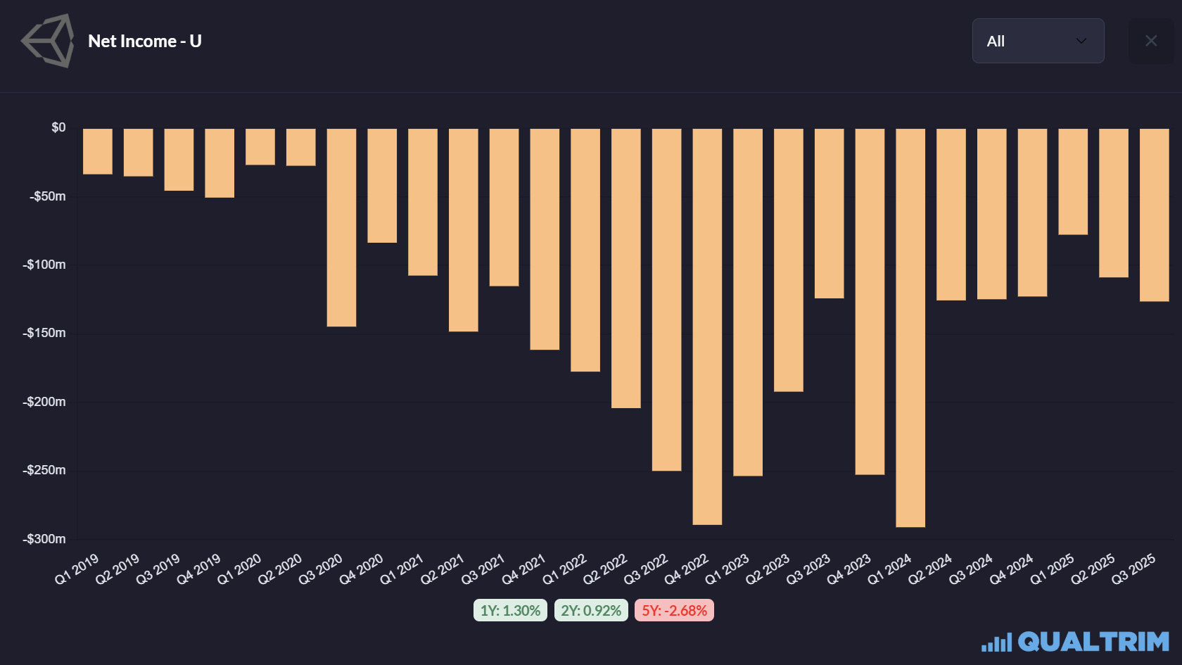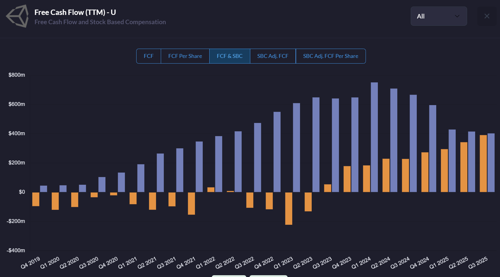 Unity management prefers to discuss Adjusted EBITDA, a metric that conveniently adds back the billion dollars of stock compensation. In Q3 2025, they reported an Adjusted EBITDA of $109 million.